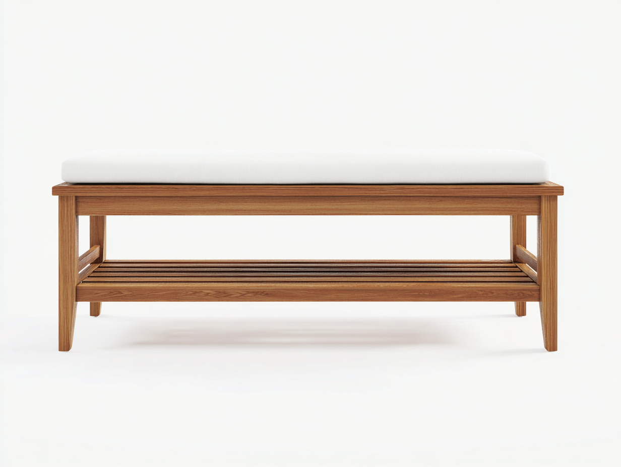 Outdoor Bench Solid Wood with Cushion and Lower Shelf 140x50x45 cm - Natural Wood - Garden Seating - Contemporary Outdoor Design