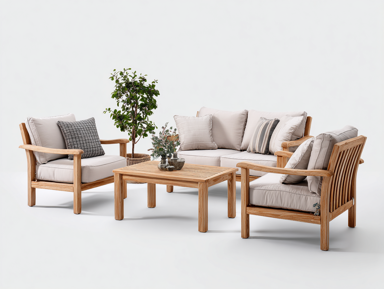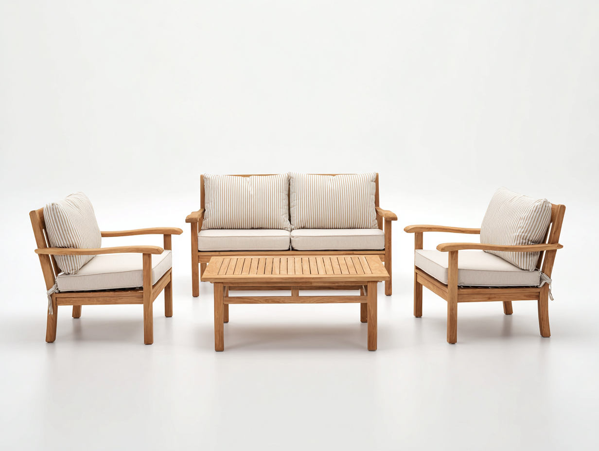 Outdoor Sofas solid wood outdoor lounge set with cushions 2 seater sofa and armchairs with table 200x80x75 cm - natural wood-cream - outdoor living design